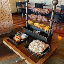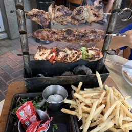 It was a nice afternoon so we sat outside on their patio for lunch. The patio is nice, aesthetic and the inside decor is modern with a nice vibe. Service was friendly and the menu had a lot of good options, especially for apps... we wanted to make room for our main entrees... But failed we ordered the cheese sticks and they were delicious!We came for their mixed grill and it did not disappoint! The meat was flavorful and tender plus presentation is always a plus for me. I loved the rack they served it on. The lamb was my favorite. My husband opted for the chicken shawarma. And he was very happy with his choice.We would definitely return! There are more things on the menu I’d like to try.